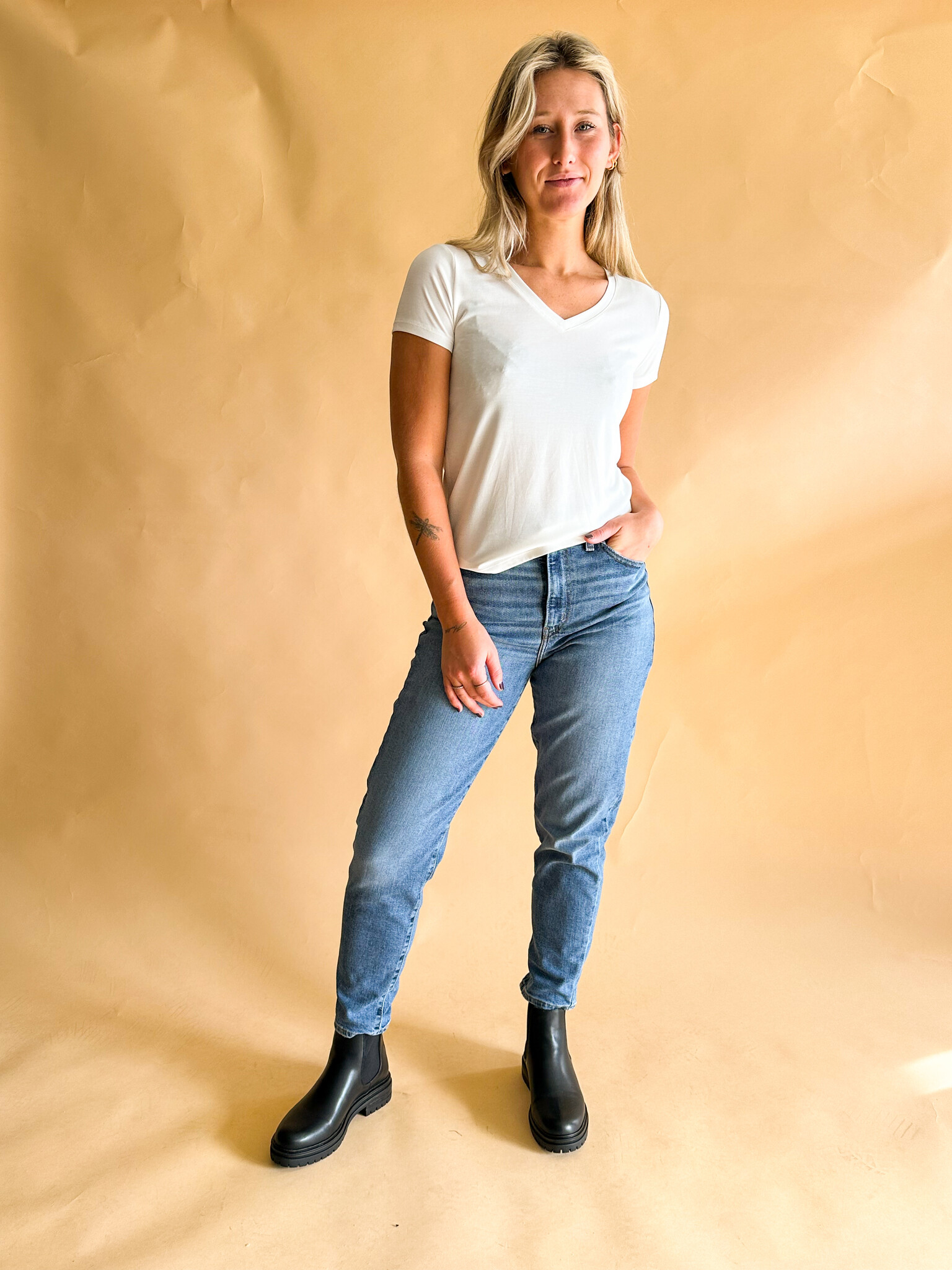 T-SHIRT V-NECK COLUMBINE - BLANC CASSÉ